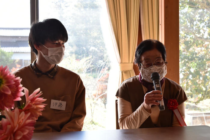 ●農村のおばあちゃんやおじいちゃんの暮らしについて興味を持っていたため、参加しました。元気に素敵な生き方をされているおばあちゃんのお話を伺うことができ、こちらまで元気をいただきました。僕にとってこの出会いは、僕自身の人生観に影響を及ぼすくらい素敵なものだった、と感じています。(伊藤宏應さん・信州大学4年生) -